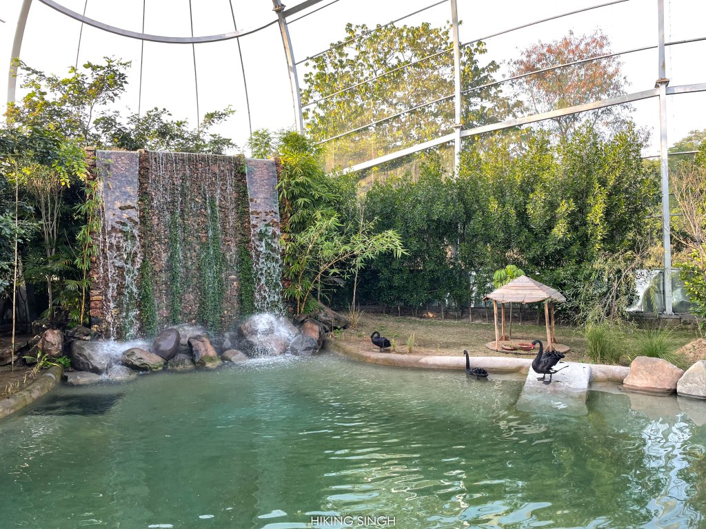 The Chandigarh Bird Park have provided ample space for each & every bird with 58 feet flying height with total ground area approx. 200×150 feet each for terrestrial birds and aquatic birds. The entire park has been developed spanning an area of over 6.5 acres behind the Sukhna Lake. The structure is designed in a way that it surrounds thousands of plants of varying canopies, which gives an ideal habitat, food and shelter for these birds so that they can freely fly and breed. It is believed that this structure would be the tallest structure of the country in Aviary domain. The aviaries have a 58-foot flying space with close to 200×150 feet of ground area. In total, there are 2 small and 2 walk-through aviaries.