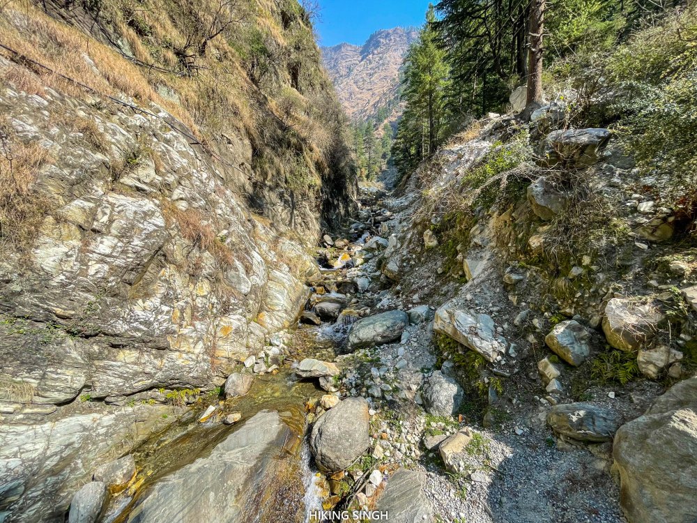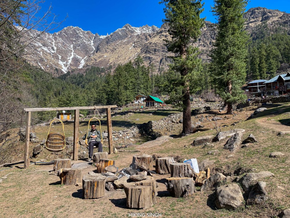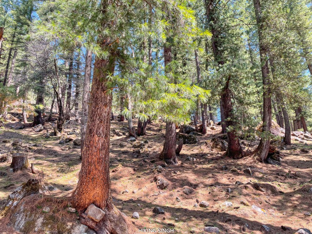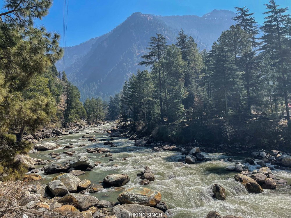 As we hiked through the dense forests, we were treated to stunning vistas of the snow-capped peaks that dot the horizon. Peaks such as Kullu Makalu (6,291 meters) and Papsura (6,451 meters) from the Dhauladhar range are visible from Chalal, and their towering presence against the azure sky is a sight to behold. The pristine Parvati River accompanied us throughout the trek, providing a calming backdrop to our adventure.