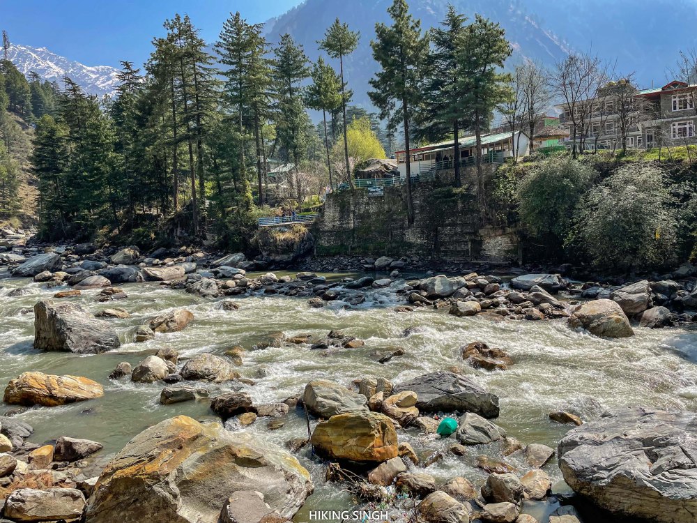 As we had to trek the same day, we thought of getting freshen up at kasol itself. As you enter Kasol you will find hippies in tattered clothes over tattooed bodies all around. After having our breakfast, we started our trek at about 10:45 AM. We asked a few locals about the trek route and they guided us on the right path. Nestled along the banks of the Parvati River. Kasol is known for its serene ambiance, lush greenery, and vibrant culture. From Kasol, the trek to Chalal, a small village located just 30 minutes away, begins.