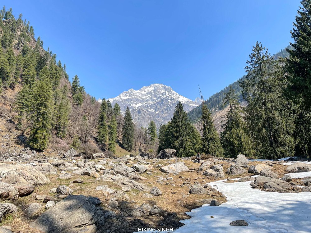 As we made our way up, we were greeted with panoramic views of the snow-capped peaks of the Parvati Valley, including the famous peaks of Kailash, Pinnacle, and Hanuman Tibba, which are visible from various vantage points along the trek.